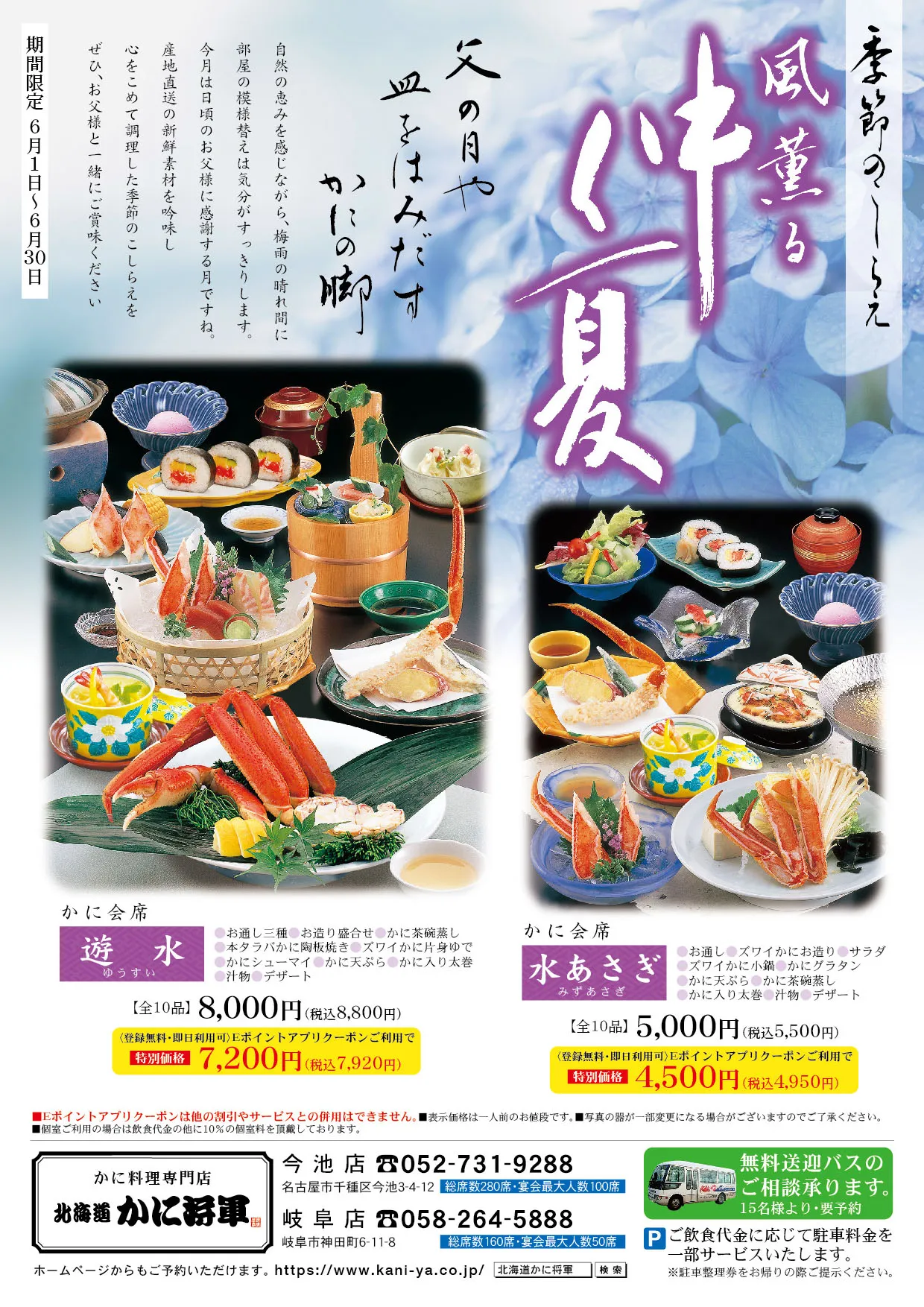 - 4名様より前日までのご予約にて承ります。